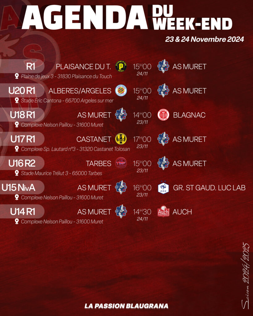 Match de choc pour nos U15 Niveau A, leader du championnat, qui joueront à la maison et affronteront St Gaudens. Les 3 points pour nos Blaugranas leur permettraient de rester 1er de la poule.