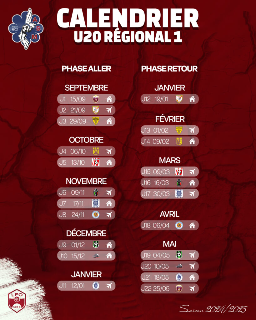 CALENDRIER U20 R1 By Le Muretain | 8 septembre 2024 Leave a comment Découvrez le calendrier de nos U20 R1 pour cette saison 2024/2025. Nos Blaugranas débutent le championnat dimanche 15 septembre à la maison face à FC Claira St Laurent. Share Now
