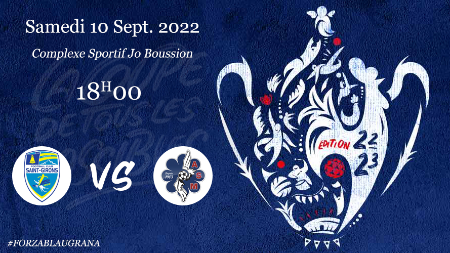 Samedi 10 Septembre à 18H00, nos Blaugranas iront défier le Football Club Saint Girons, club qui évolue en D1, pour le 3ème tour de Coupe de France.