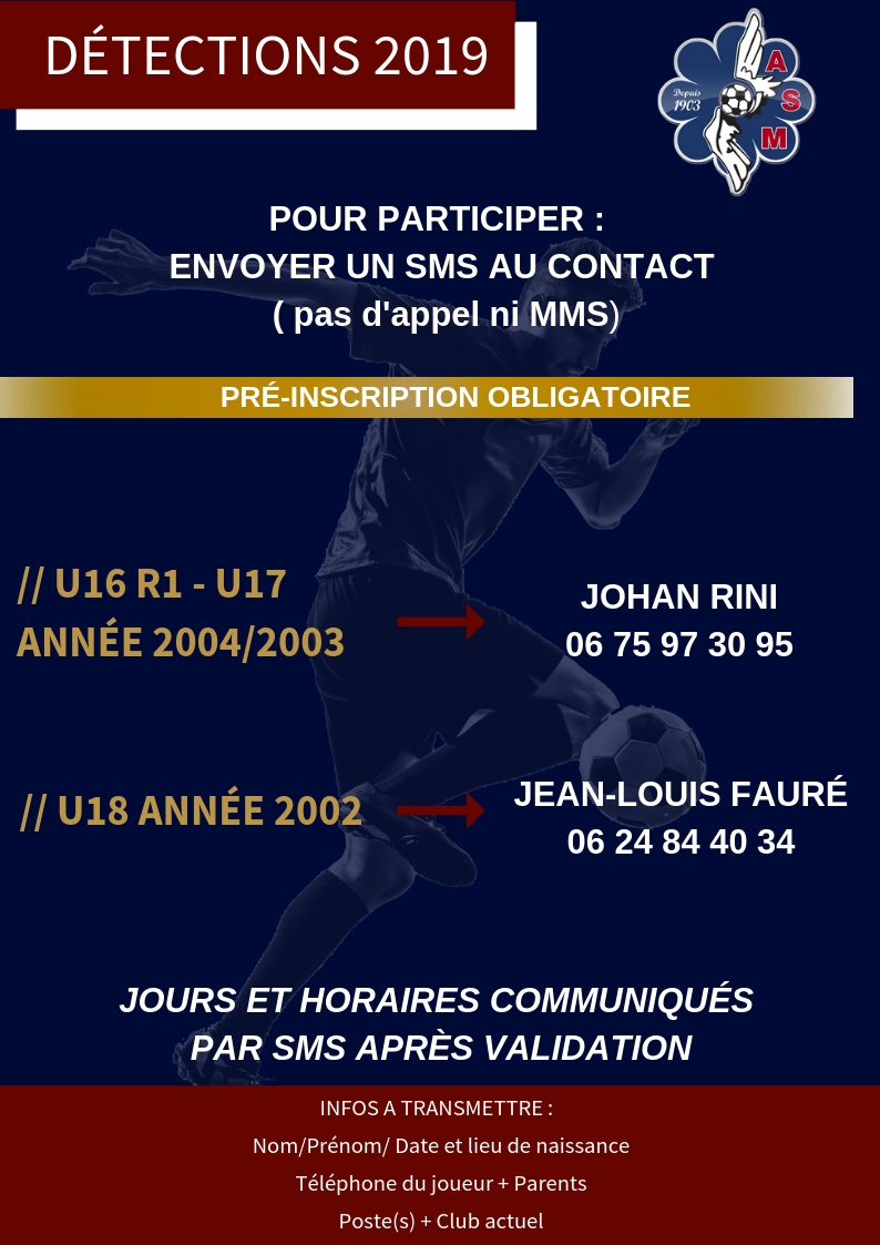 Des détections pour intégrer l’AS Muret Football la saison prochaine sont programmées ce mois-ci !