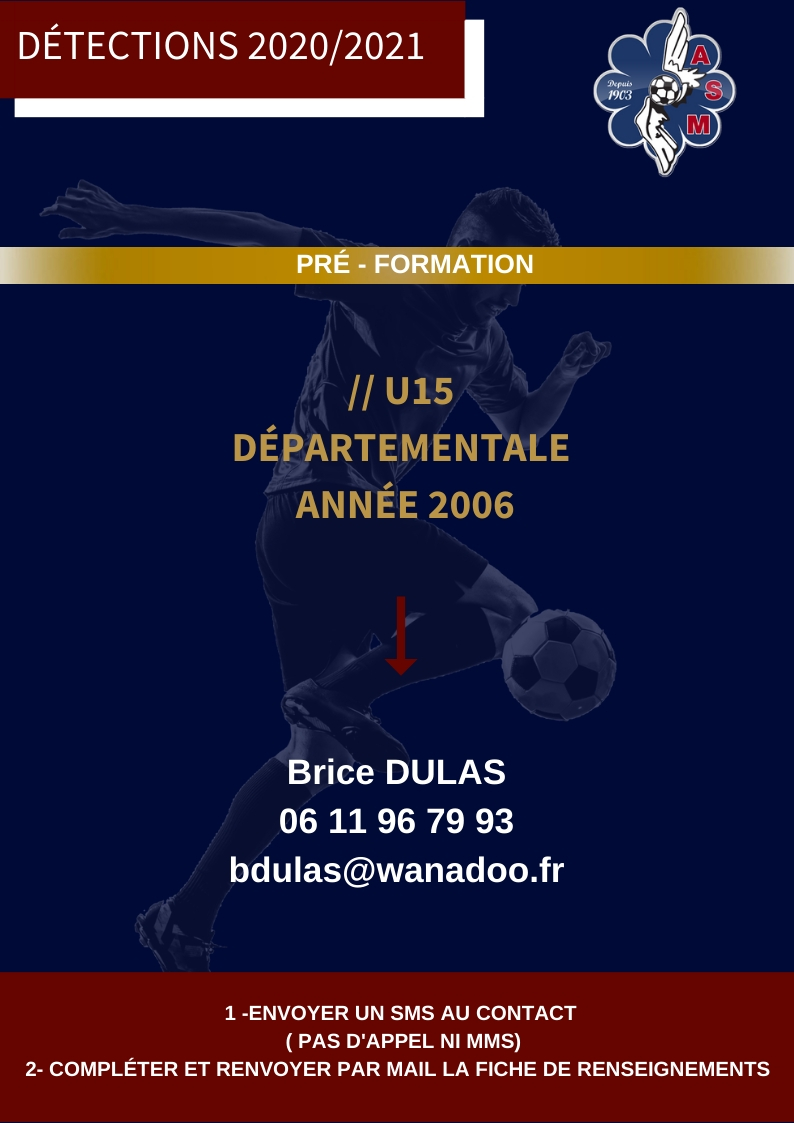 Si vous souhaitez intégrer l’AS MURET pour la saison 2020/2021, merci de contacter l’éducateur en charge de la catégorie selon la procédure suivante :