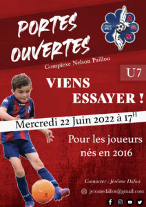 Egalement, nous organisons des portes ouvertes pour les futurs U7, mercredi 22 juin au Complexe Nelson Paillou à 17h00.