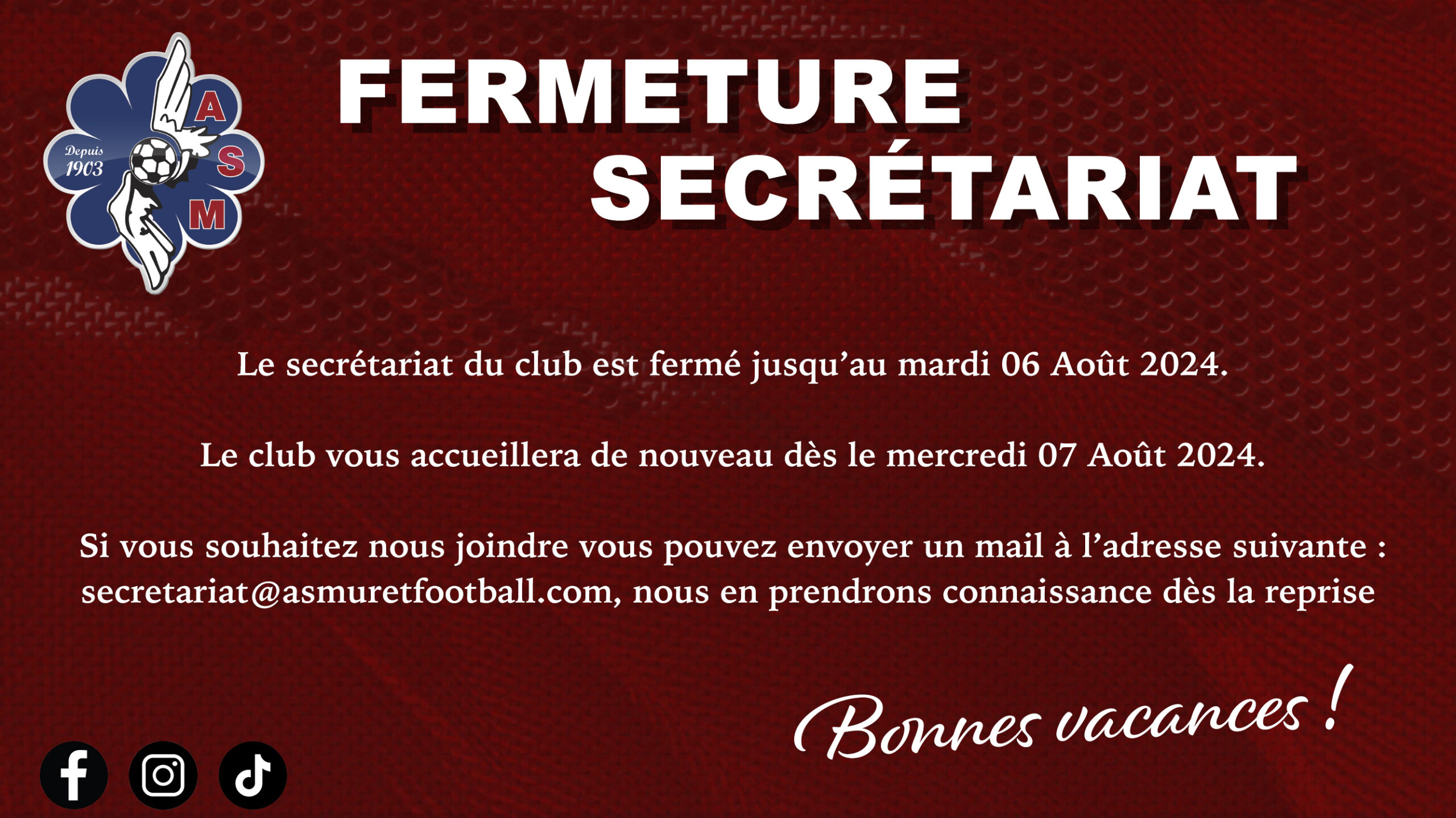 FERMETURE SECRÉTARIAT