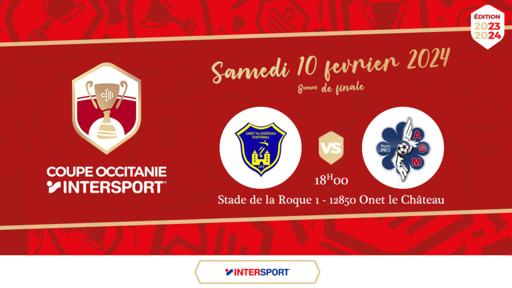 LES 8ÈMES DE FINALE DE LA COUPE OCCITANIE By Le Muretain | 8 février 2024 Leave a comment Samedi soir, notre équipe première sera en déplacement à Onet-le-Château pour les 8èmes de finale de la Coupe Occitanie. Share Now