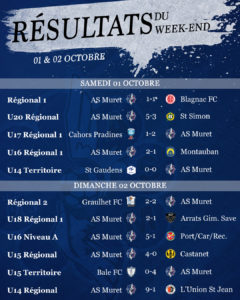 Nos U17 R1 ont enchainé avec une troisième victoire consécutive puisqu’ils ont été cherché la victoire à Cahors Pradines (1-2). Nos U16 R1 ont réalisé une belle performance en gagnant 2-1 en jouant à 10 contre 11 pendant 65 minutes.