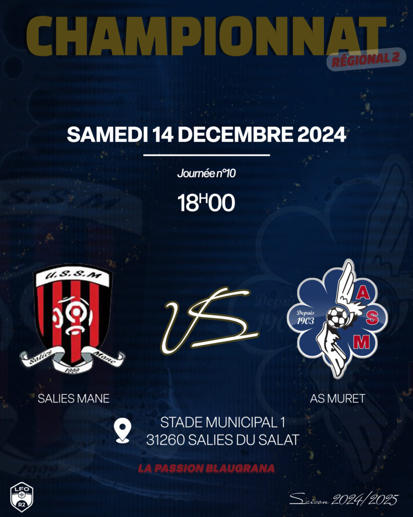 Notre équipe réserve se rendra à Salies pour son dernier match de l’année 2024 !