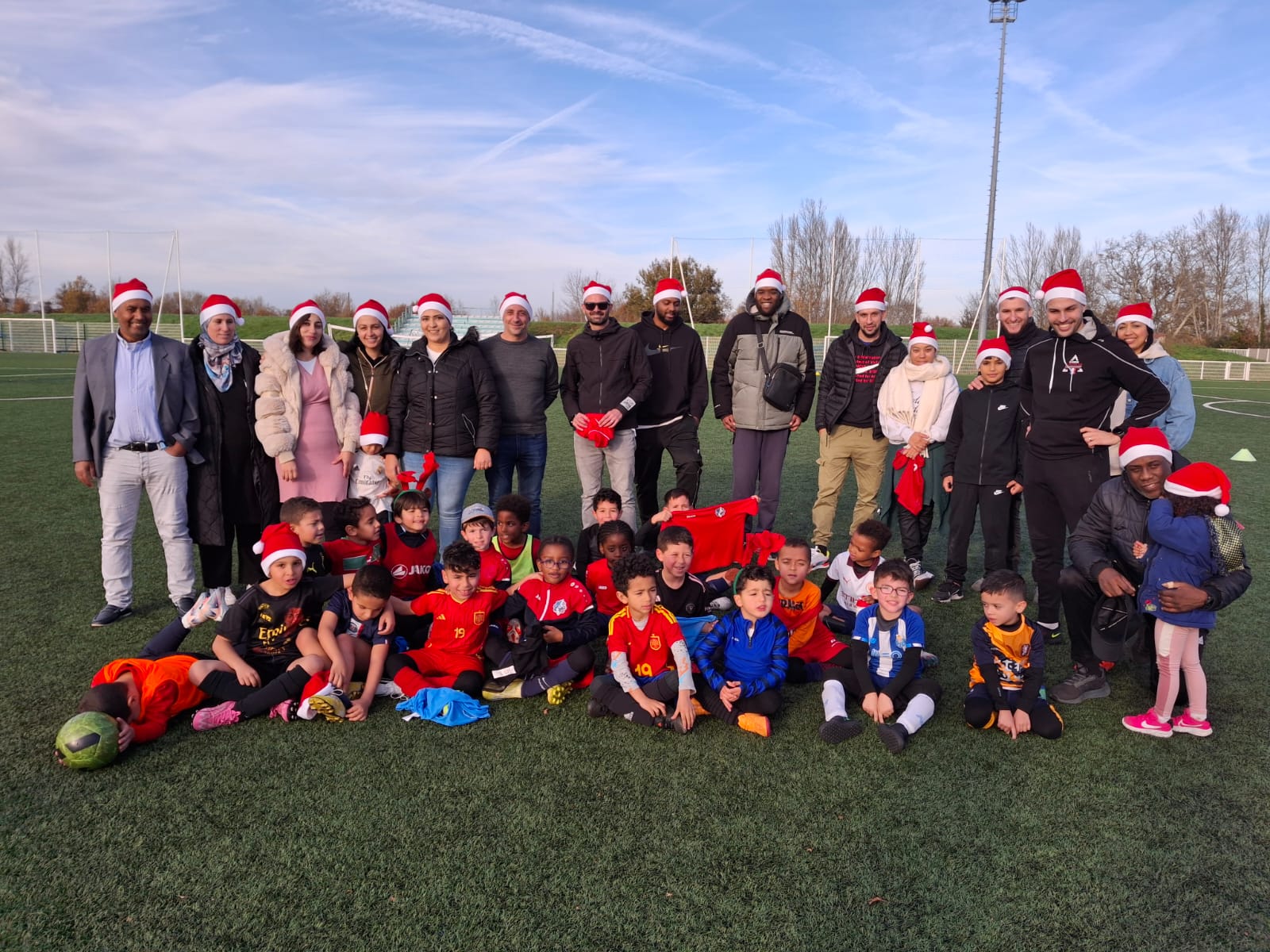 À cette occasion, nos éducateurs et les parents ont revêtu leurs plus beaux bonnets de Noël pour plonger dans une ambiance festive. Des matchs entre les joueurs ont été organisés, offrant l’opportunité de vivre des moments riches en joie et en complicité autour du rectangle vert. Certains parents, se sont prêtés au jeu en coachant des équipes avec passion et bonne humeur.
