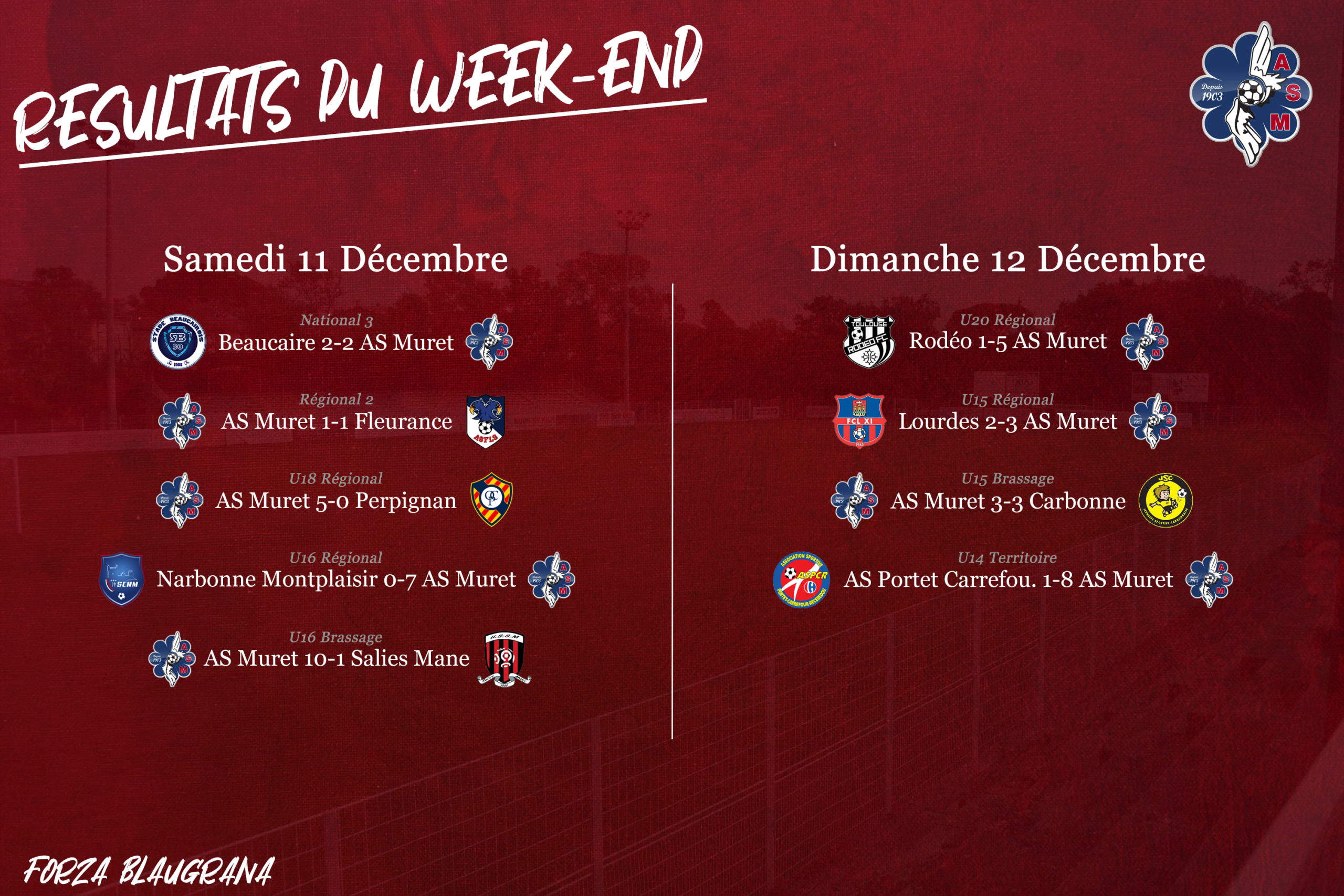 Ce week-end a été l’occasion pour nos équipes de réaliser des scores fleuves avec les U16 territoire (10/1 face à salies) et les U16 R1 à Narbonne 7/0. Mais aussi nos U18 face à Perpignan OC sur le score de 5/0 ou les U14 Territoire en gagnant à Portet 8/1.
